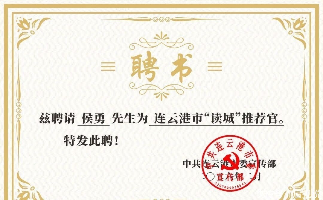 家乡连云港市政府正式对外宣布,聘请侯勇担任“读城计划”城市文化推荐官;